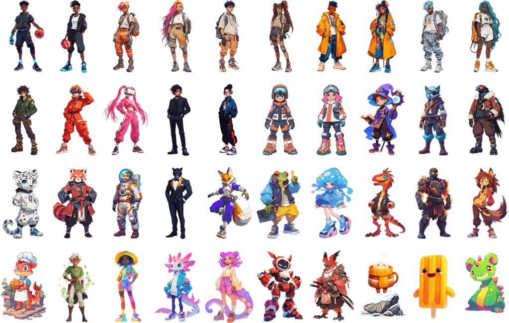 Using this character ideation matrix, I created a collection of placeholder avatars that would appeal to 8-17 year olds. I also developed internal guidance for the exploratory use of AI-generated imagery, then took the initiative to source and direct professional artists in the creation of final production assets.