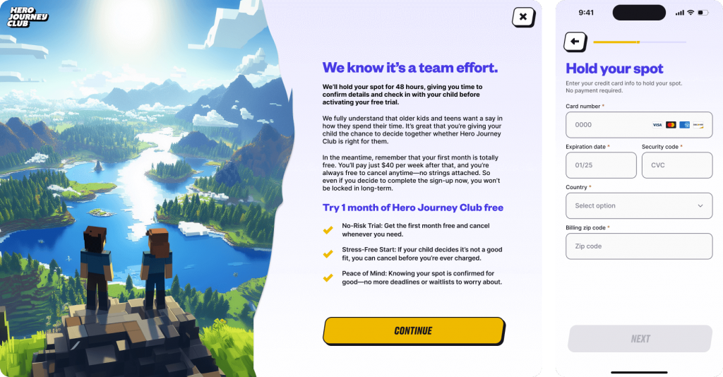 Through post-launch testing, we discovered an urgent, unexpected opportunity: despite the offer a of a free trial, many parents were hesitating to sign up for the program without first talking about it with their child.